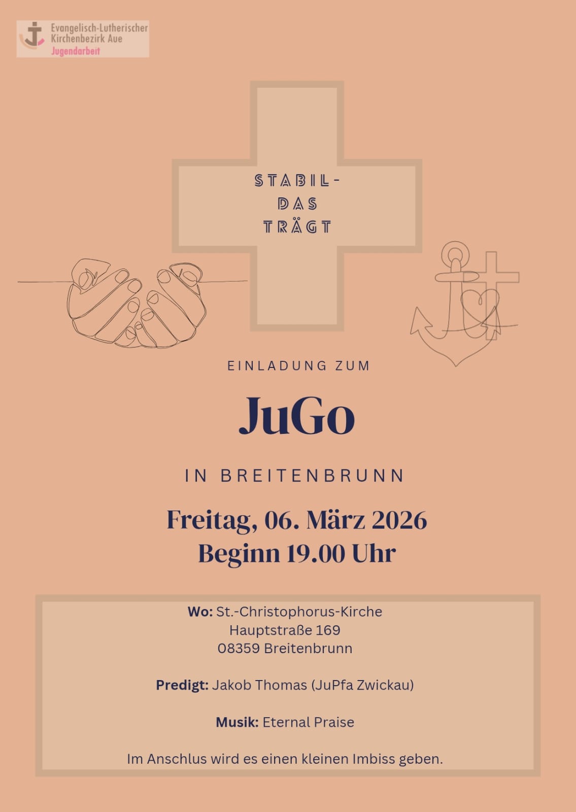 19:00 Uhr I St.-Christophoruskirche Breitenbrunn Thema: „Stabil – Das trägt“ Predigt: Jakob Thomas (JuPfa Zwickau), Musik: Eternal Praise Im Anschluss […]